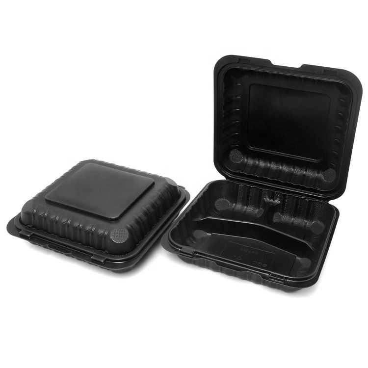 Одноразовий харчовий контейнер 8x8 дюймів з 3 відділеннями чорного кольору
